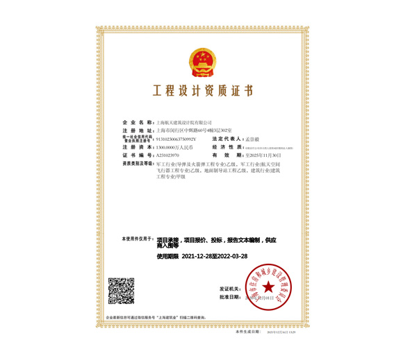 设计院是一家综合性的咨询设计单位,具有国家颁发的多项资质证书:建筑设计行业甲级资质、工程咨询甲级资信证书(机械、建筑)、建筑工程施工总承包三级、建筑装饰装修工程专业承包二级、特种设备设计许可证(压力管道 GC2)等资质,并取得ISO9001质量体系认证证书。